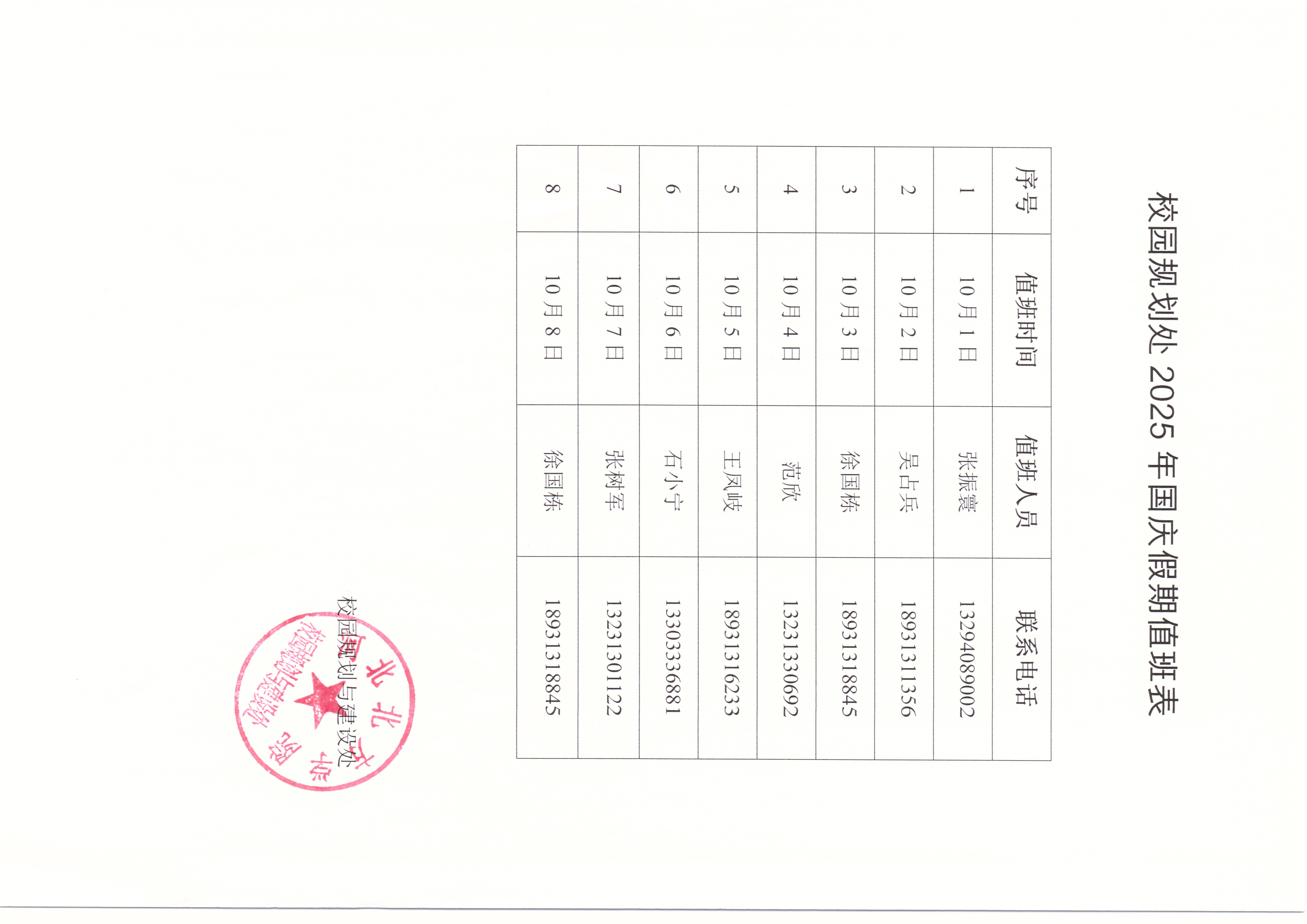 序号 | 值班时间 | 值班人员 | 联系电话 |